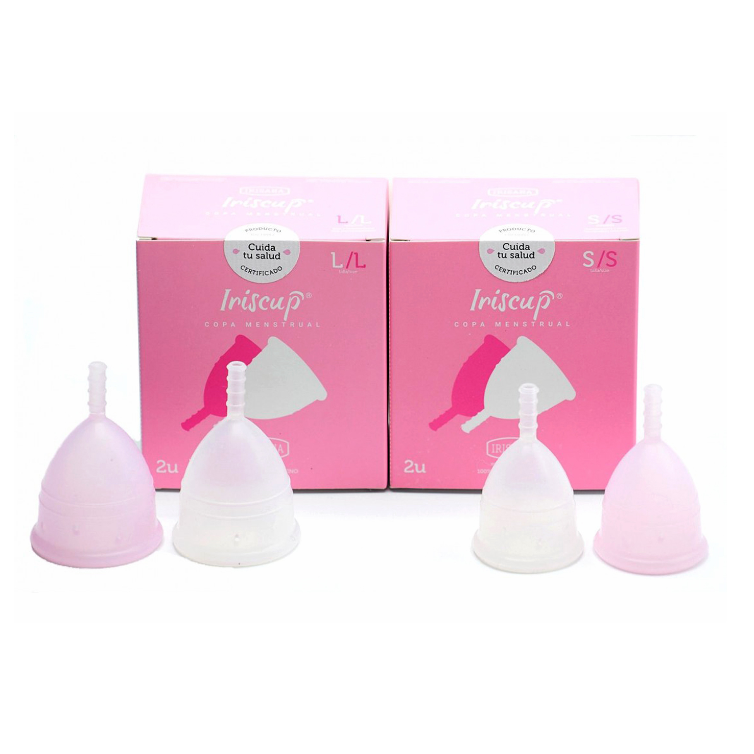 - 2 Copas menstruales de la misma talla, 1 rosa y 1 transparente.